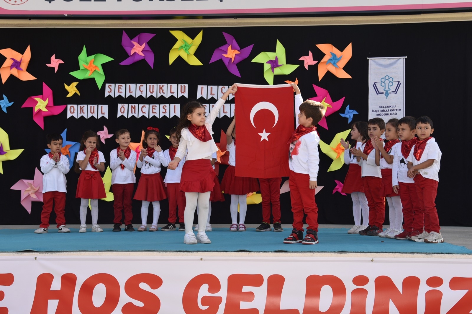 Protokol konuşmalarının ardından program, Selçuklu Belediyesi Sabır Anaokulu'nun halk oyunları gösterisi, Şehit Demet Sezen Anaokulu'nun ritim gösterisi, Selçuklu Anaokulu'nun şiir dinletisi ve Selçuklu Ümide Güler Atsüren Anaokulu'nun cimnastik gösterisi ile devam etti. Gösterilerin ardından Kum Boyama, Drama, Yüz Boyama, Sevgi Bahçesi, Çiçek Ekimi, Robotik Kodlama, Boncuk Bileklik ve Deniz Kaşifleri atölyelerinde gerçekleştirilen etkinlikler öğrencilerimizin eğlenerek öğrenmelerine imkân sağladı.